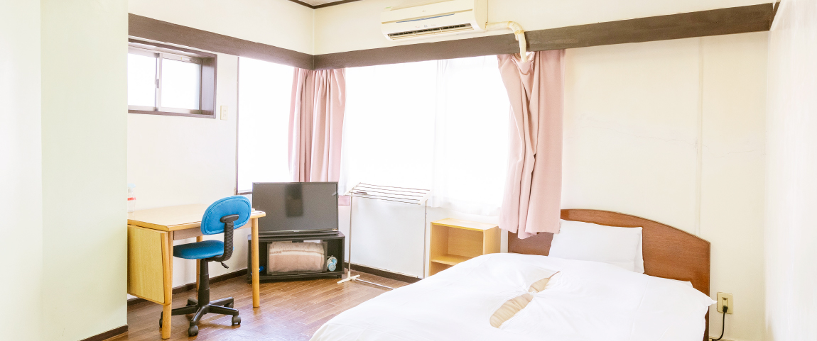 6畳(20㎡~22㎡)というコンパクトなつくりのお部屋ですが、お1人さまでしたらゆっくりとくつろげる空間となっております。